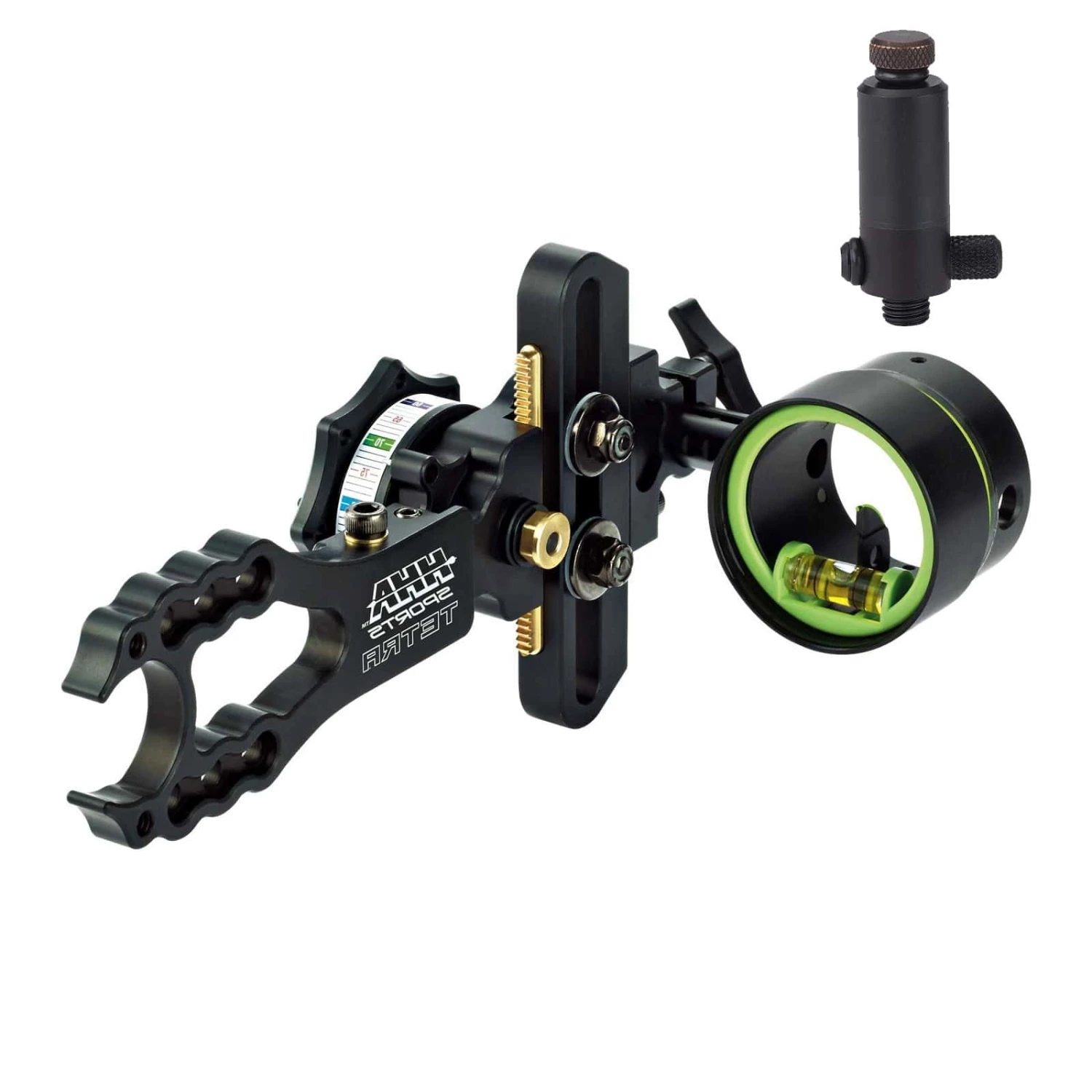Over two decades of technology come together to provide one of the most versatile, lightweight and rugged sights available. The Tetra delivers a silky smooth 2.1” of travel on your choice of a fixed frame or dovetail bar. To the yard accuracy with our patented R.D.S. sight tapes and precision windage adjustment provide deadly accuracy in the field and on the range. The quiver friendly, wheel forward designs make these sights ideal for bowhunters and 3D shooters alike. With 2nd and 3rd axis adjustment and a full line of accessories, the Tetra is destined to take over as the new #1 slider sight on the market today.